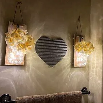 HOMKO Decorative Mason Jar Decorations with 6-Hour Timer LED Fairy Lights and Flowers - Rustic Home Decor (Set of 2)