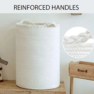 Homlikelan 72L Woven Laundry Hamper,Cotton Tall Wicker Laundry Basket for Blankets,Clothes,Pillows,Toys,Shoes Large Laundry Bin White