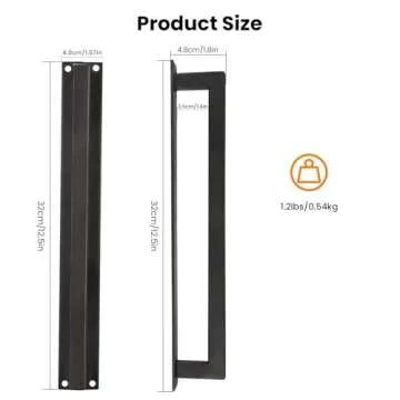 Show moreIntroducing the Homode Barn Door Handle, your ultimate solution for elevating the look of your sliding barn doors, gates, and even your garage. This stunning 12" rustic pull handle embodies the perfect blend of form and function, featuring a unique and simplistic design that enhances the character of your doors. The sleek matte black finish not only adds a contemporary touch, but it also complements a variety of styles – from modern to craftsman. Equipped with a robust construction of solid carbon steel and a durable powder coating, this handle is built to last, ensuring it withstands everyday use while maintaining its stunning appearance.