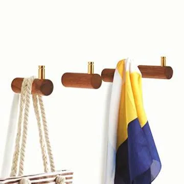Homode Coat Hooks, Wooden Wall Hooks Heavy Duty, 2 Pack Decorative Wall Hanger with Gold Peg, for Hanging Clothes, Robes, Hats, Backpack, Plant, Keys, Purses, Leash, Black Walnut