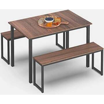 The unique 3-piece configuration includes a charming table with dimensions of 43.3” L x 27.6” W x 29.5” H and two benches measuring 39.4” L x 10.6” W x 17.7” H. The benches conveniently slide under the table when not in use, offering an ingenious solution to save space while providing additional seating for up to six people. This product is not just a dining table; it's a multi-functional piece that can double as a computer desk or a study desk, catering to various lifestyle needs.
