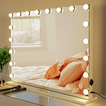 With generous dimensions of 31.5 inches wide by 23.6 inches high, this versatile mirror serves multiple purposes—whether it be for makeup, grooming, or just dressing up. Its standing design is perfect for optimal placement on any vanity or tabletop. Upgrade your beauty space and indulge in a professional-grade makeup experience that truly shines with the HOMPEN Makeup Vanity Mirror.
