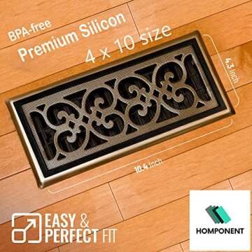 Homponent Floor Register Trap/Vent Mesh - 4 x10 Silicon Magnetic Air Vent Screen Cover, Easy Install Vent Bug Mesh Perfect for Wall/Ceiling/Floor Air Vent Filters. 2-Pack (4 x10, Black)