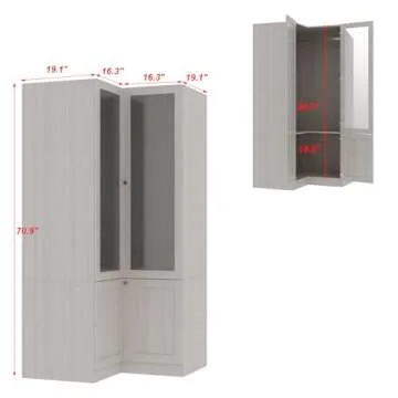 Homsee Warm Grey L-Shape Armoire Wardrobe Closet with Frosted Glass Doors, Hanging Bar & Shelves, Wooden Closet Storage Cabinet for Bedroom (35.4”L x 35.4”W x 70.9”H)