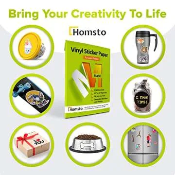 Show more Unleash your creativity with the Homsto Vinyl Sticker Paper, the ultimate matte printable vinyl sticker solution perfect for artists, DIY enthusiasts, and anyone looking to personalize their belongings! Specially designed for laser printers, this high-quality paper delivers vibrant, professional-grade stickers that make your designs shine. At 8.5 x 11 inches, each sheet is the ideal size for all your crafting needs. No need to settle for bland stickers when you can create stunning pieces that truly stand out!