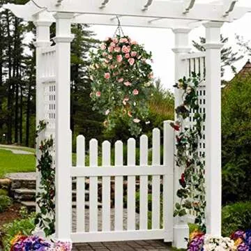 Homsunny Artificial Vine Silk Azalea Flowers,Hanging Plant in Basket, Ivy Fake Silk for Patio Lawn Garden Porch Home Spring Decor (Champagne)