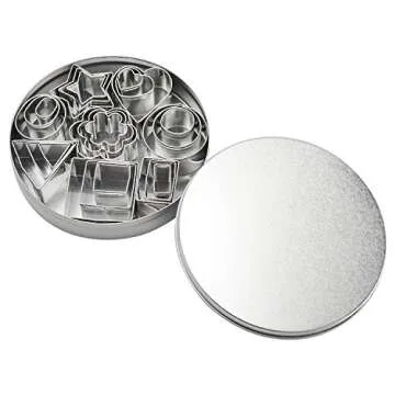 Show more Introducing the Homy Feel Mini Geometric Shaped Cookie Biscuit Cutter Set, a delightful collection of 24 meticulously crafted stainless steel molds designed to elevate your baking and crafting experience. This versatile kit features an assortment of shapes including rectangles, squares, hearts, triangles, and tiny circles, giving you the creative freedom to create stunning treats and decorations. Made from 18/8 commercial-grade 304 stainless steel, these cutters are not only durable and rustproof but also dishwasher safe and oven-safe up to 500°F. Whether you're baking cookies, crafting fondant decorations, or even preparing mini donuts, this cutter set is your go-to companion in the kitchen.