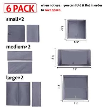 homyfort Dresser Drawer Organizer, Foldable Cloth Storage Box Closet Cube Basket Bins Containers Divider with Drawers for Underwear, Bras, Socks, Ties, Scarves, Set of 6, Grey