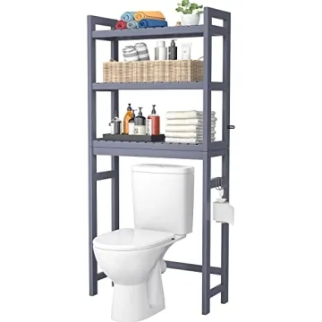 Show moreTransform your cluttered bathroom into a haven of organization with the stunning Homykic Over The Toilet Storage, Bamboo 3-Tier Organizer Rack. This innovative storage solution is meticulously designed to utilize the limited vertical space in your bathroom while providing a stylish touch to your decor. Crafted from high-quality bamboo, this storage unit boasts durability and an inviting aesthetic that blends seamlessly with various home styles. With dimensions of 24.8” W x 10.3” D x 66.7” H, and positioned perfectly above standard toilets (the bottom shelf sits a convenient 35.6” from the floor), it ensures easy access to your essentials without occupying precious floor space.