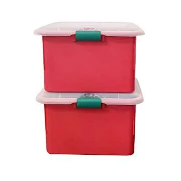 HOMZ Light Organizer Holiday Plastic Storage Container Set, Durable Red 2 Pack