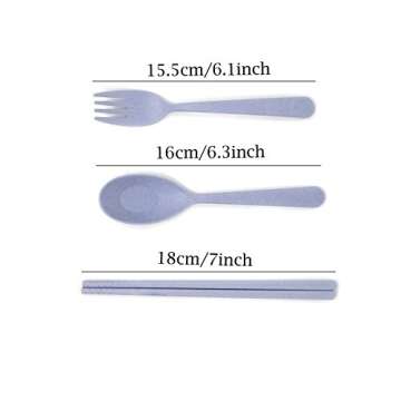 Honbay 3PCS Portable Cutlery Boreal Europe Style Wheat Straw Spoon Chopstick Fork Tableware set for Travel, Picnic, Camping or Just for Daily Use (Blue)
