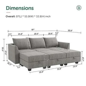 One of the standout features of this sofa is its hidden storage capability. With ample storage space measuring 25.6 W x 25.6 D x 6 H inches beneath each seat, you can effortlessly tuck away blankets, pillows, or children's toys, keeping your space neat and organized. The ease of assembly is another plus; the HONBAY couch comes with clear instructions and no tools are required—perfect for those who may feel intimidated by furniture assembly.