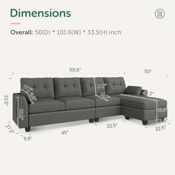 Introducing the HONBAY Reversible Sectional Sofa, the perfect combination of style, functionality, and comfort, tailored specifically for modern living. This L-shaped sectional couch, dressed in a chic dark grey, not only enhances the aesthetic of your space but also offers unparalleled comfort with its firm yet cushioned seating. The thoughtful design features a stylish nail-head trim and includes a convenient storage bag, ensuring that you can keep your living area neat and organized. With...