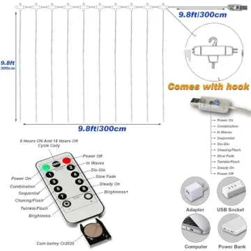 Honche 300Led Cuttable Curtain String Lights 10x10ft with Remote Window Lights for Bedroom Wedding Party Festive Season Propose Marriage (Warm White)