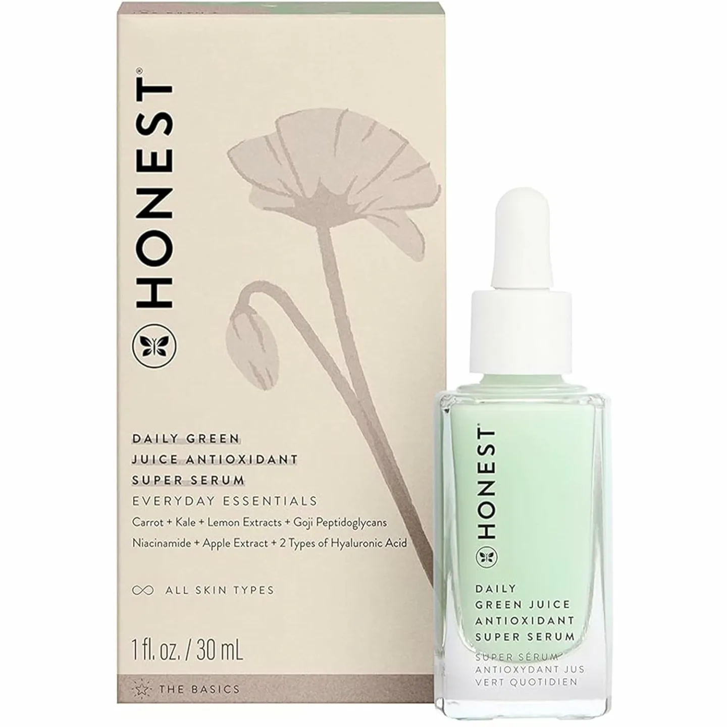 Show moreIntroducing the Honest Beauty Daily Green Juice Antioxidant Super Serum, a revolutionary skincare product designed to elevate your beauty routine. This serum, from the renowned Honest Beauty brand, is packed with powerful ingredients that improve your skin tone and texture. Featuring a unique blend of niacinamide and hyaluronic acid, this vegan and cruelty-free serum offers unparalleled hydration and clarity. Ideal for those with sensitive skin, its smooth, non-sticky formula is light and pleasant-smelling, ensuring a soothing and cooling application experience you’ll adore.