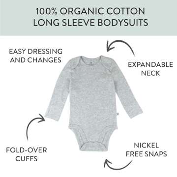 HonestBaby 5-Pack Long Sleeve Bodysuits One-Piece 100% Organic Cotton for Infant Baby Boys, Unisex, Natural Ombre,3-6 Months