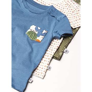 Each t-shirt features a practical pocket design that adds a playful touch. The fabric is incredibly soft and stretchy, making them easy to put on and take off, perfect for busy parents. Moreover, these t-shirts are designed to retain their shape and color even after multiple washes, offering durability that stands up to the rough and tumble of everyday life.