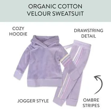 Show moreExperience unparalleled comfort with the HonestBaby Velour Pullover Hoodie and Zip Front Sweatshirt and Jogger Sweatpants Set—an ideal choice for your little one! Made from super soft and breathable organic cotton, this set is designed specifically for the delicate skin of babies and toddlers, ensuring that they feel cozy and relaxed all day long. Featuring an adorable Lavender color with stripes, this outfit is not only functional but also fashionable, making it a must-have addition to your child's wardrobe.