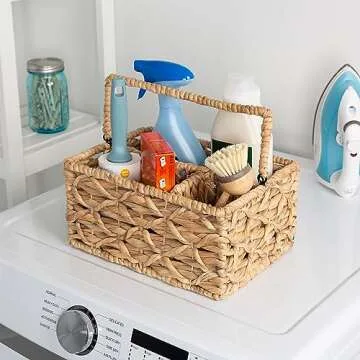 Show moreIntroducing the **Honey-Can-Do Multi-Use 3-Compartment Wicker Basket Caddy (STO-09844)**, an elegant and functional storage solution designed for versatile organization in your home. Made from handwoven natural water hyacinth fibers, this caddy showcases an eco-friendly approach with a beautiful, natural finish that seamlessly complements any decor. Measuring **12.75 inches in length, 9 inches in width, and 6.1/10 inches in height**, it fits perfectly on countertops, in cabinets, or on shelves while providing ample storage space for your essentials. This caddy also features a built-in handle, allowing for easy transport and convenient use wherever you need it most.