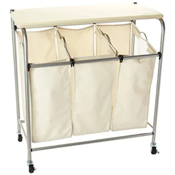 Show moreThe Honey-Can-Do Rolling Laundry Sorter with Ironing Board is the ultimate solution for simplifying your laundry routine while enhancing your home's functionality. Crafted with durable fabric and sturdy metal construction, this versatile organizer features three spacious bins to effortlessly categorize lights, darks, and delicates. What truly sets this laundry sorter apart is the integrated ironing board, which lifts easily from the top, providing a flat surface for ironing or folding clothes without the hassle of relocating your items. Compact yet robust, it fits snugly into tight spaces, ensuring that it becomes essential for any laundry area.