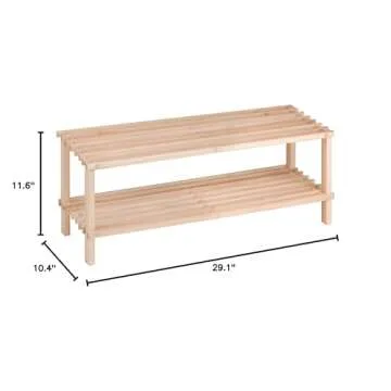 Show moreTransform your home organization with our exquisite 2-Tier All-Natural, Unfinished Pine Wood Shoe Organizer. Designed to accommodate all types of footwear including shoes, slippers, and boots, this versatile rack is perfect for decluttering your space and bringing order to your daily life. Standing at a convenient size of 29.1 inches in length, 10.4 inches in width, and 11.6 inches in height, this organizer saves precious floor space while providing ample room for all your footwear needs.
