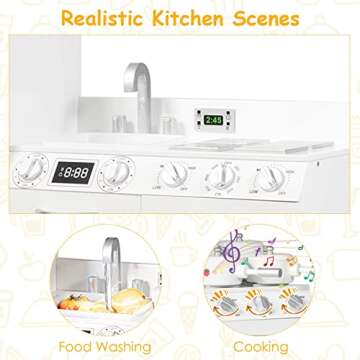 HONEY JOY Kids Kitchen Playset, Wooden Little Chef Pretend Play Kitchen Set w/Cookware Utensils, Sink, Water Dispenser, Large Storage Cabinet, Pretend Play Kitchen for Toddlers, Gift for Boys Girls 3+