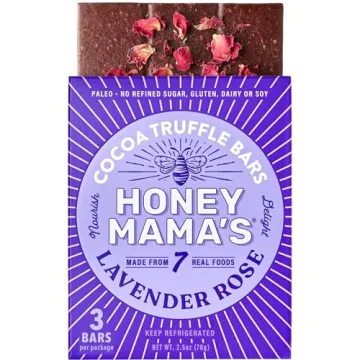 Honey Mama's Lavender Rose Cocoa Truffle Bar stands out amongst competitors thanks to its dedication to using only whole, natural ingredients. Unlike many other chocolates that are laden with fillers and artificial flavors, this bar prioritizes authenticity and health without sacrificing deliciousness. Competitors might create sweet treats that are appealing, but few can rival the combination of flavor, quality, and health benefits that Honey Mama's delivers. The commitment to no refined sugars and being handcrafted in small batches ensures that each bar meets high-quality standards that mass-produced chocolate cannot match.