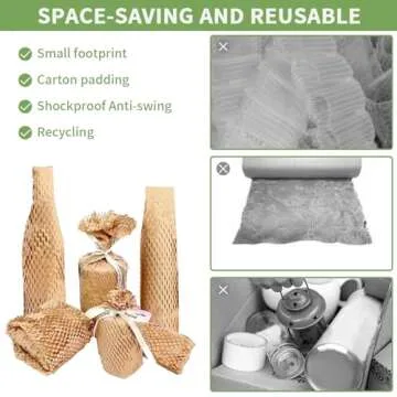 Show moreIntroducing the Honeycomb Packing Paper Wrap from Yintok, your go-to solution for ensuring safe transit of your fragile items! This revolutionary packing material measures a generous 15 inches in width and stretches up to 400 feet in length, making it perfect for all your packing needs. Crafted from virgin wood pulp, this eco-friendly honeycomb wrapping is recyclable and biodegradable, allowing you to protect your valuables without harming the environment. Its innovative design allows the paper to expand into a robust honeycomb structure, providing superior cushioning that protects glassware, vases, and other delicate items with ease. Users rave about its effectiveness, noting a dramatic reduction in breakages when shipping glass items.