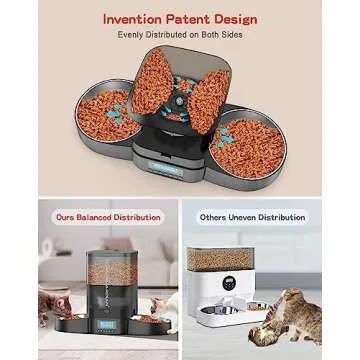HoneyGuaridan 3.5L Automatic Cat Feeder for Two Cats, Cat Food Dispenser with Stainless Steel Bowl,Timed Cat Feeder Programmable 1-6 Meals Control, Dual Power Supply,10s Meal Call Black