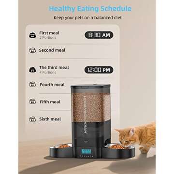 HoneyGuaridan 5L Automatic Cat Feeder for Two Cats, Cat Food Dispenser with Stainless Steel Bowl,Timed Feeder Programmable 1-6 Meals Control, Dual Power Supply,Desiccant Bag Black