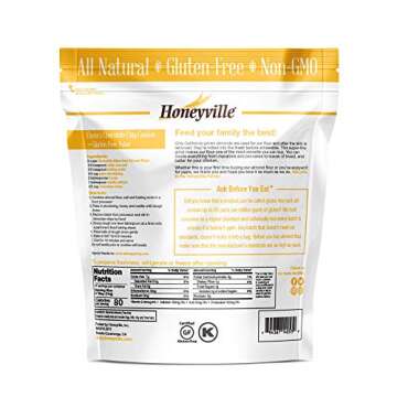 Show moreIntroducing Honeyville Blanched Almond Flour, a premium, ultra-fine grind flour made from the best California-grown almonds. This 3lb bag of almond flour is not only high in protein, boasting 6 grams per serving, but it also serves as a fantastic source of vitamin E, making it an excellent addition to your kitchen. Perfectly crafted for gluten-free baking enthusiasts, Honeyville's almond flour is certified gluten-free, offering you the confidence you need to create delectable treats without the worry of gluten contamination. Our special milling process ensures that each batch maintains the highest quality, delivering a finely ground flour that enhances the lightness and texture of your baked goods, ensuring every cookie, cake, or loaf turns out to perfection. Whether you are following a Celiac-friendly diet, a Paleo lifestyle, or simply wish to bake with lower carbs, this almond flour is your go-to solution.
