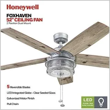 Honeywell Foxhaven Farmhouse Ceiling Fan: Stylish 52 Inch Indoor/Outdoor Fan with Light and Dual Mount Options
