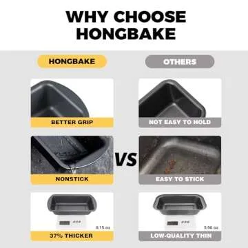 Unlike many other bread pans on the market, the HONGBAKE loaf pans offer a combination of durability and ease of use that sets them apart. Many competitors may use thinner material which can lead to warping, but our premium carbon steel construction promises superior performance. Additionally, our nonstick coating is both PFOA and BPA-free, ensuring that your baked goods come out cleanly every time, a feature that not all brands prioritize. With a set of 3 loaf pans included, you're not just purchasing a bakeware set, you're investing in quality and versatility for your kitchen.