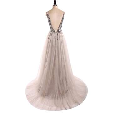 HONGFUYU Deep V-Neck Appliques Long Prom Dress with High Slit Long Evening Dress Grey-US4