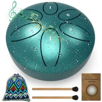 Show more Introducing this beautifully crafted Steel Tongue Drum, designed to bring joy and tranquility into any space. With its rich tonal range and easy-to-learn mechanics, this musical instrument is perfect for everyone, from beginners to seasoned musicians. Equipped with 6 distinct notes, you’ll be able to create complex melodies effortlessly. The included songbook offers a range of tunes to help you dive into the world of music with ease.