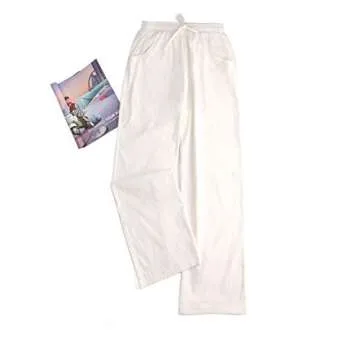 Hongsui Women's Comfortable Cotton Linen Palazzo Pants with Pockets - White, Medium
