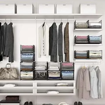 Hongtamoya 4-tier Sliding Closet Organizers and Drawer Shelves, Stackable Storage Bins for Jean Pants and Sweaters, Metal Drawer Slid Clothes Storage Container, Closet Organizers for Clothes - Black