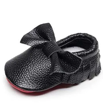 HONGTEYA Red Bottoms Baby Moccasins - Premium Soft Sole Fringe Bow Leather Boys and Girls Shoes for Infant Toddlers(3-6 Months/US 4/4.53''/ See Size Chart,Black)