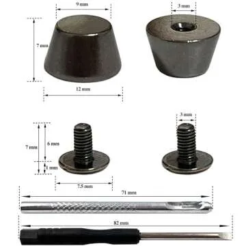 Honigo 24 Pack Gun Black Rivets Stud Handbag Purse Feet 1/2 inch Flat Head Metal Solid Brass Studs Screw Back Feet 12mm Buckle Spikes Leathercraft for Leather Bag Totes DIY Craft