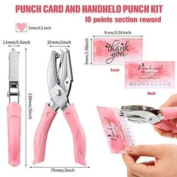 Honoson Punch Card and 100 Pieces Reward Punch Card, Handheld Kit, Single-Hole Paper Metal Piercer with Soft Grip, Home Office Supplies, Clothing Ticket Scrapbook Piercer Tool(Elegant)