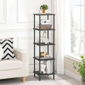 HOOBRO 5-Tier Corner Shelf Stand, Corner Square Rack Display Shelf, Tall Storage Rack Plant Stand, Corner Bookcase for Small Spaces, Living Room, Home Office, Kitchen, Black BK50CJ01