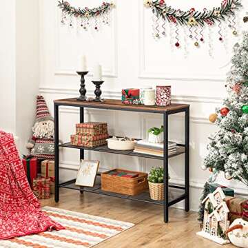 HOOBRO Console Table, Sofa Table with 2 Flat or Slant Adjustable Mesh Shelves, Hallway Table and Sideboard in Entryway, Living Room Corridor, Easy Assembly, Industrial, Rustic Brown and Black BF01XG01