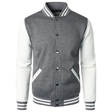 HOOD CREW Men's Varsity Baseball Jacket - Dark Grey XL | Stylish Cotton Blend