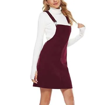 Show moreStep into style and comfort with the Hooever Women's Cute Corduroy Overall Bib Dress. Designed with a chic mini short design, this pinafore suspender dress skirt jumper in stunning Wine Red is the perfect blend of functionality and fashionable flair. Crafted from a medium-weight, high-quality corduroy fabric, this dress ensures warmth and comfort while remaining lightweight enough for all-day wear. The adjustable straps allow for a customized fit, while the convenient side zipper makes getting dressed a breeze. This overall dress features one spacious front pocket, adding a practical yet stylish element to your ensemble. Dress it up or down, it's versatile enough for spring, summer, autumn, and winter!