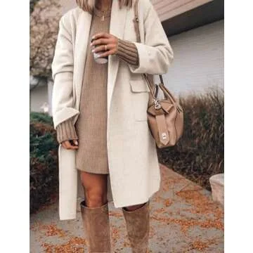 Hooever Women's Long Cardigan Wool Coat Open Front Pockets Warm Lapel Jacket Coat 2024 Fall Outerwear (Beige-L)