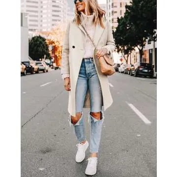 Hooever Women's Winter Wool Coat Casual Notch Lapel Single-Breasted Peacoat(beige-S01)