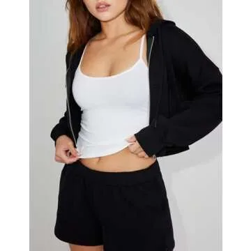 Hooever Womens Cute Workout Cropped Zip Up Drawstring Hoodie Sweatshirt Jacket