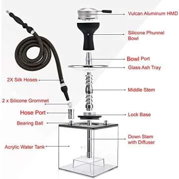 Hookah Set with Everything - Kitosun Updated Cube Modern Shisha include Vulcan HMD Silicone Phunnel Bowl Silk Pipe Coal Tongs Remote LED Light for Great Smoking | Easy Cleaning Easy Inhale 2 Hoses