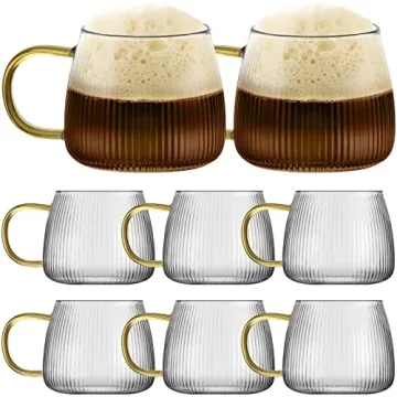 Show more Transform your daily coffee ritual with the Hoolerry 8 Pack Glass Coffee Mugs, designed for both function and style. Each mug boasts a generous capacity of 12.5 ounces, making it perfect for indulging in your favorite hot beverages like coffee, tea, or even refreshing juices. Measuring 3.15 x 3.5 inches (Height x Width), these mugs are not only comfortable to hold but also generously sized to share moments with friends and family. Crafted from high-quality borosilicate glass, they are built to last and withstand everyday use without warping or staining, ensuring that your favorite drinks taste just as they should.