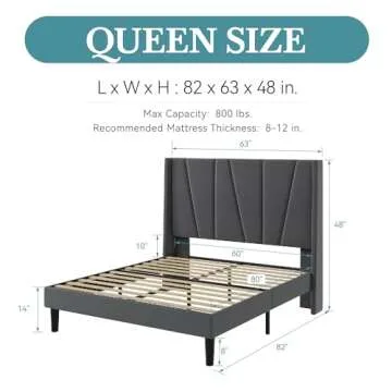 HOOMIC Queen Size Platform Bed Frame with Geometric Wingback Headboard, Wooden Slats Support, No Box Spring Needed, Modern Style in Dark Grey